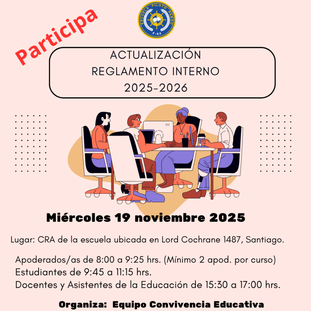 Estimadas familias, comunidad educativa. En el contexto de actualizar nuestra normativa vigentes las y los invitamos a participar en la actualización de nuestro RICE 2026. Quedan cordialmente invitad@s.