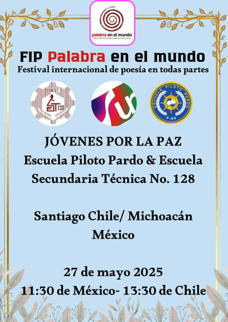 En esta ocasión los jóvenes de la escuela Piloto Pardo de Santiago de Chile y los estudiantes de la escuela Técnica No 128 de Michoacán México se unen para expresar sus creaciones poéticas, sus latidos juveniles en pos de la paz en sus vidas, en su territorio, en el mundo actual.